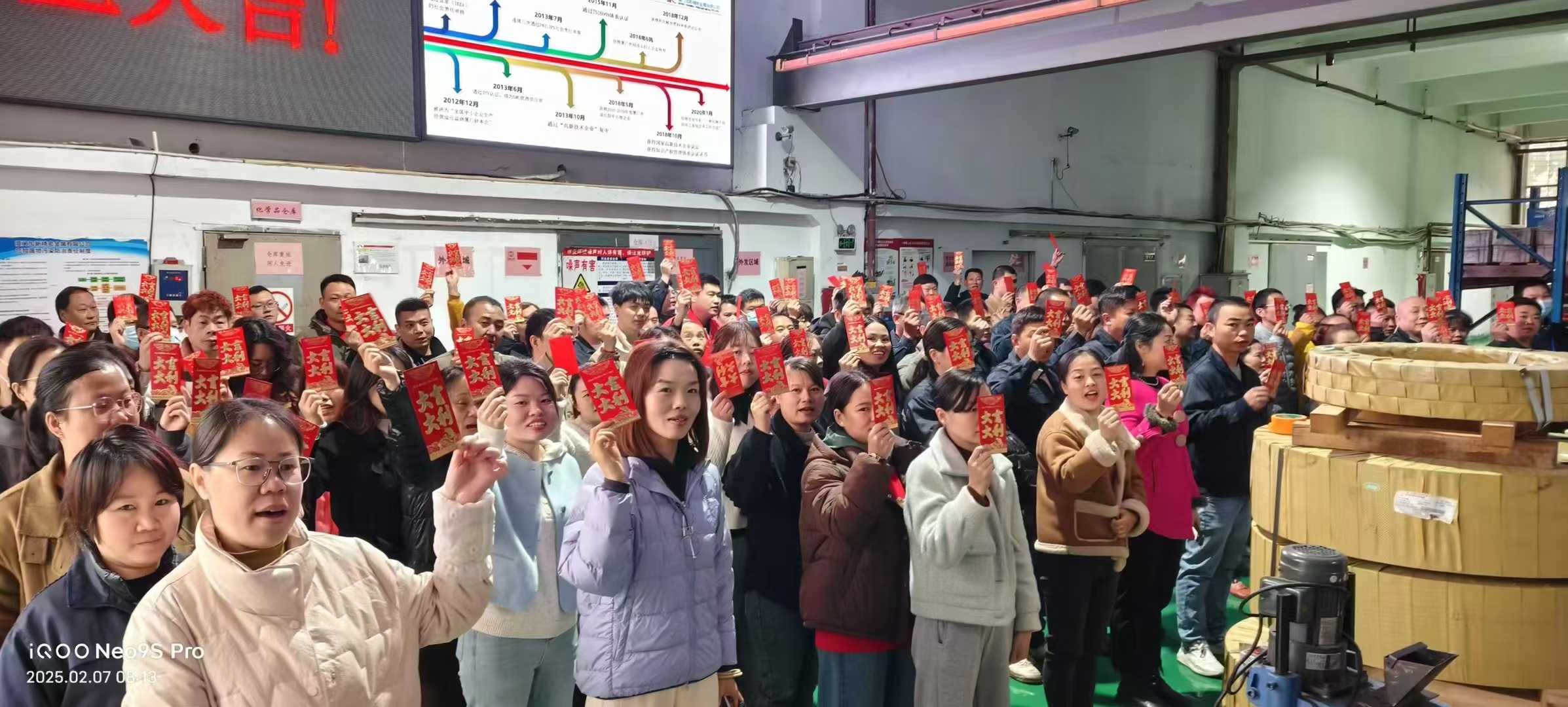 [Jiaxin Precise Metal Co., Ltd. I dipendenti si riuniscono per l'incontro mattutino il primo giorno di lavoro nel 2025. Ogni dipendente ha ricevuto una busta rossa come segno di buona fortuna per l'anno a venire.]